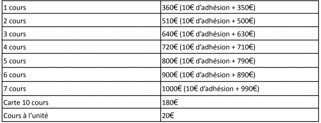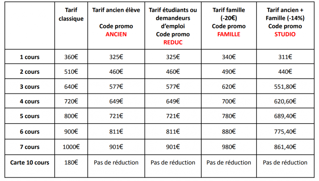 Pour prétendre au tarif ancien élève, il faut avoir été inscrit sur la saison 2024-2025.